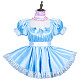 Fondcosplay Blue Satin Lockable Sissy Maid Romper with Lace Trim and Panties [G3755]US$ 107.10 US$ 119.00
