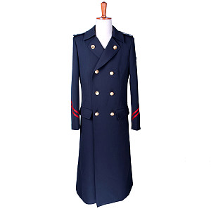 This long navy blue trench coat brings a classic military aesthetic with modern tailoring. Made from high-quality cotton designed to mimic the texture of woolen cashmere, the coat features a sharp double-breasted front with gold-tone buttons, red sleeve stripes, and a structured fit. Whether you're using it as a cosplay base or as a fashion-forward winter coat, this design delivers elegance and authority.